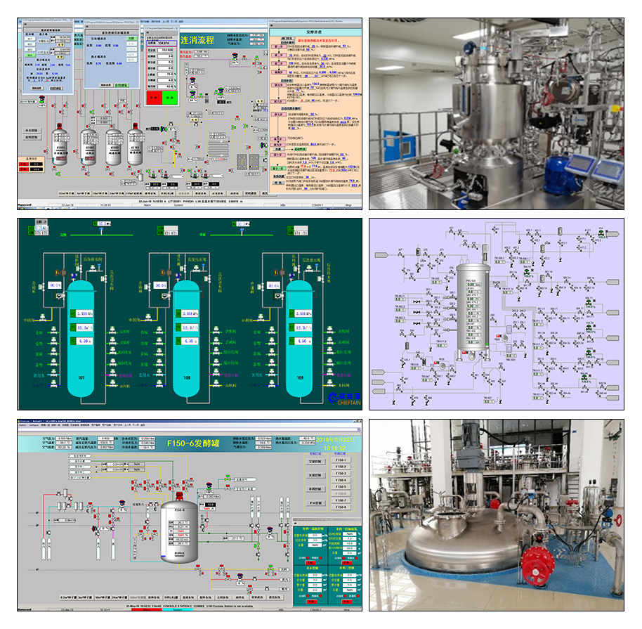 通过对发酵流程中实消、空消、保压、移种、倒种、放料等单元实现一键自动化;并结合对发酵过程中常规各类参数和部分生化参数进行检测和控制,有效地提高发酵单位和提升产品质量。