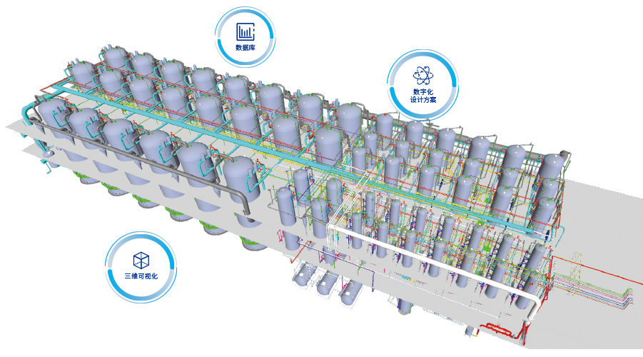 基于数据库的面向对象的工程协作设计平台Engineering Base ,用于生物医药流程型行业的工艺p&ID、仪控、电气等工程设计,通过对设计图标、设计模板的建模,搭建了以图形符号为基础的数据库,实现了详细p&ID清单查询、工况模拟及物料平衡。与三维软件结合,通过平面布局和三维可视化对生产线进行模拟,检验整个工厂布局的合理性,并保持安装过程中与生产线进行联动,对过程中的变更及时更新并不断将生产线进行合理化。